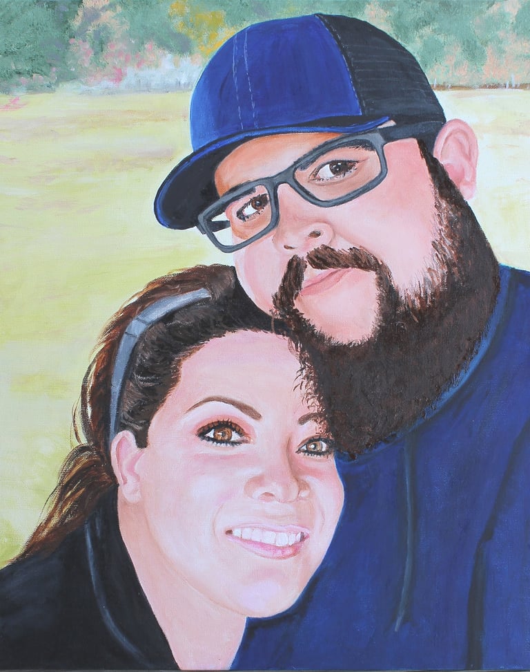 Portrait couple from photograph. Art adjusted to fit 20 x 24 inch size canvas. Medium: Combination acrylic/oIl