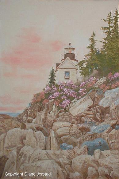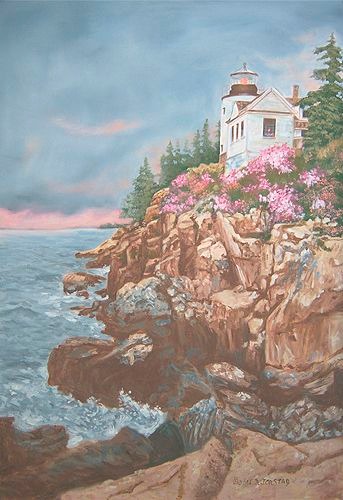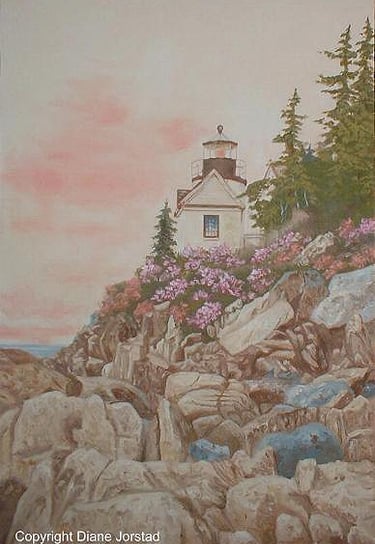 Lighthouse in Sunset oil on canvas W 36" x H 24" For Sale