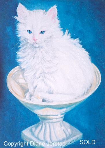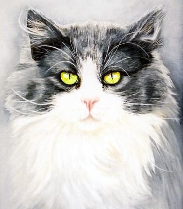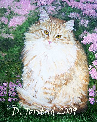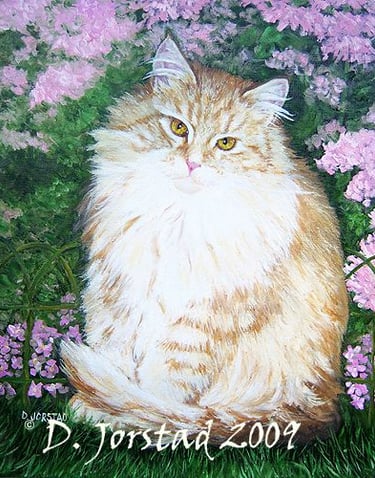 I specialize in cats and dogs, but am capable of painting any animal. All I need is a good photo from you. It is so easy to get a good photo with all the digital cameras available, necessary for the painting from your photograph.