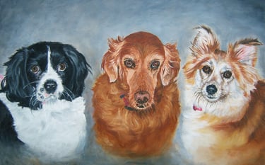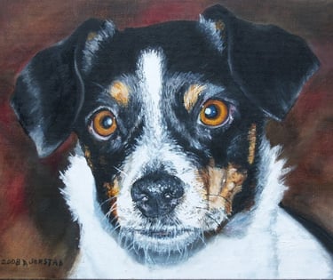 Dog portraits for clients from photographs. We discuss size of art, background colors, etc. I send photo for approval before requesting full All payment. All art here has been sold to client.