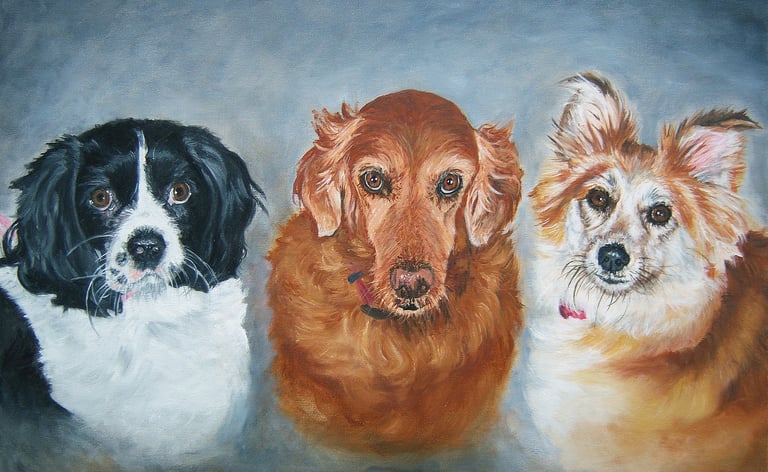 commission pet portrait artist dog art for hire custom Acrylic painting colored pencil