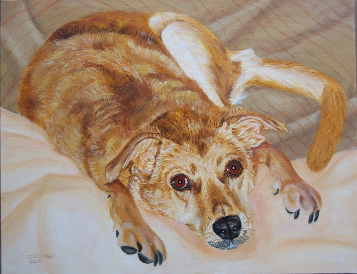 The mediums that I use are Acrylic paints on canvas and colored pencil with watercolor background on acid free illustration paper. If you prefer another medium I can do that also. Please check my gallery pages for more information and samples of artwork to see if you have a preference for a medium. Price page and size information and ordering information can be linked with the 'about artist' sub page on the link buttons. Please feel free to email me with questions. I will work with you to get the portrait you would like of your pet.