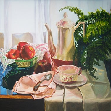 Still Life art for SALE Professional American Still Life Artist. American Still Life Artist Online' Still life fine art oil painting, original artwork for sale, buy, purchase art or commission still life art. Style of paintings are detailed realistic representational classic traditional family arts by artist.