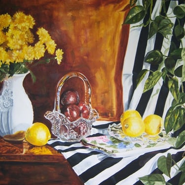 Golden Lemons & Chrysanthemums H 24" X W 36" Oil on stretched canvas (purchase or see more still life art) Https:/.Artpal.Com/Dianejorstad